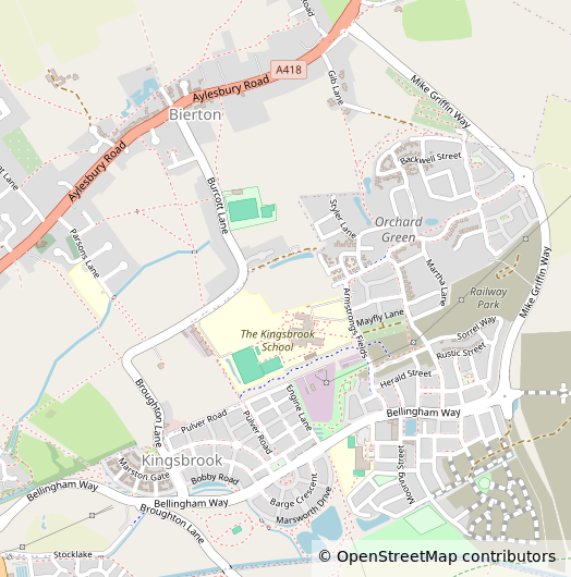 Bierton, Broughton and Kingsbrook lie to the east and north-east of Aylesbury, on the edge of town. Bierton sits on the A418 towards Milton Keynes, Broughton is on the northern side of the A41 Tring Road, and Kingsbrook extends north-east of Broughton as a modern development.